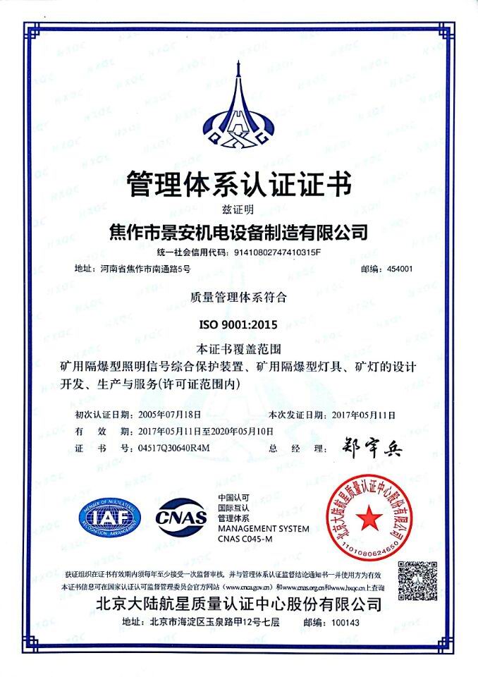 焦作景安公司始終堅持“以科技為先導,以市場為導向”的發展戰略,不斷進行新產品的研制和開發,在國家“六五”到“九五”期間,承擔和參與了國家多項科技攻關項目,產品的技術和質量一直處于全國同行業領先位置。并被中國電器工業協會評定為“質量可信產品”。特別是在礦用防爆燈領域,礦用隔爆型半導體(LED)照明燈具,2008年列入國家火炬計劃,獲2009年河南省工業和信息化廳的科技成果二等獎,并擁有多項國家專利。
